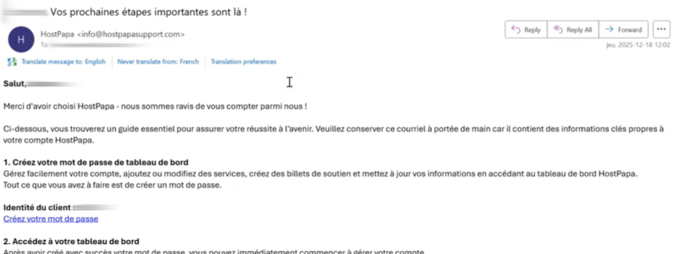 23. Une fois votre nom de domaine activé, vous recevrez un courriel de Host Papa ([email protected]) ayant pour titre: Transfer of votrenomdedomaine.ca completed.