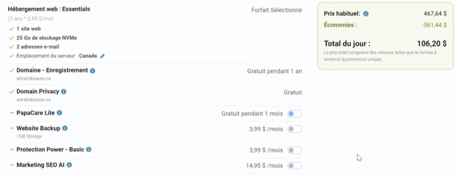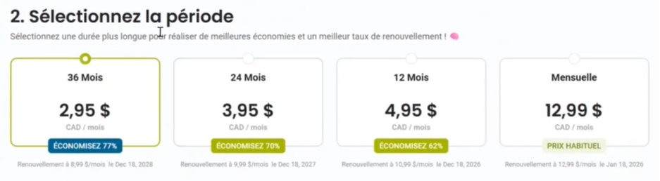2. Choisissez le forfait Essentials à 2,95$/mois (rabais de 77% pour 3 ans).